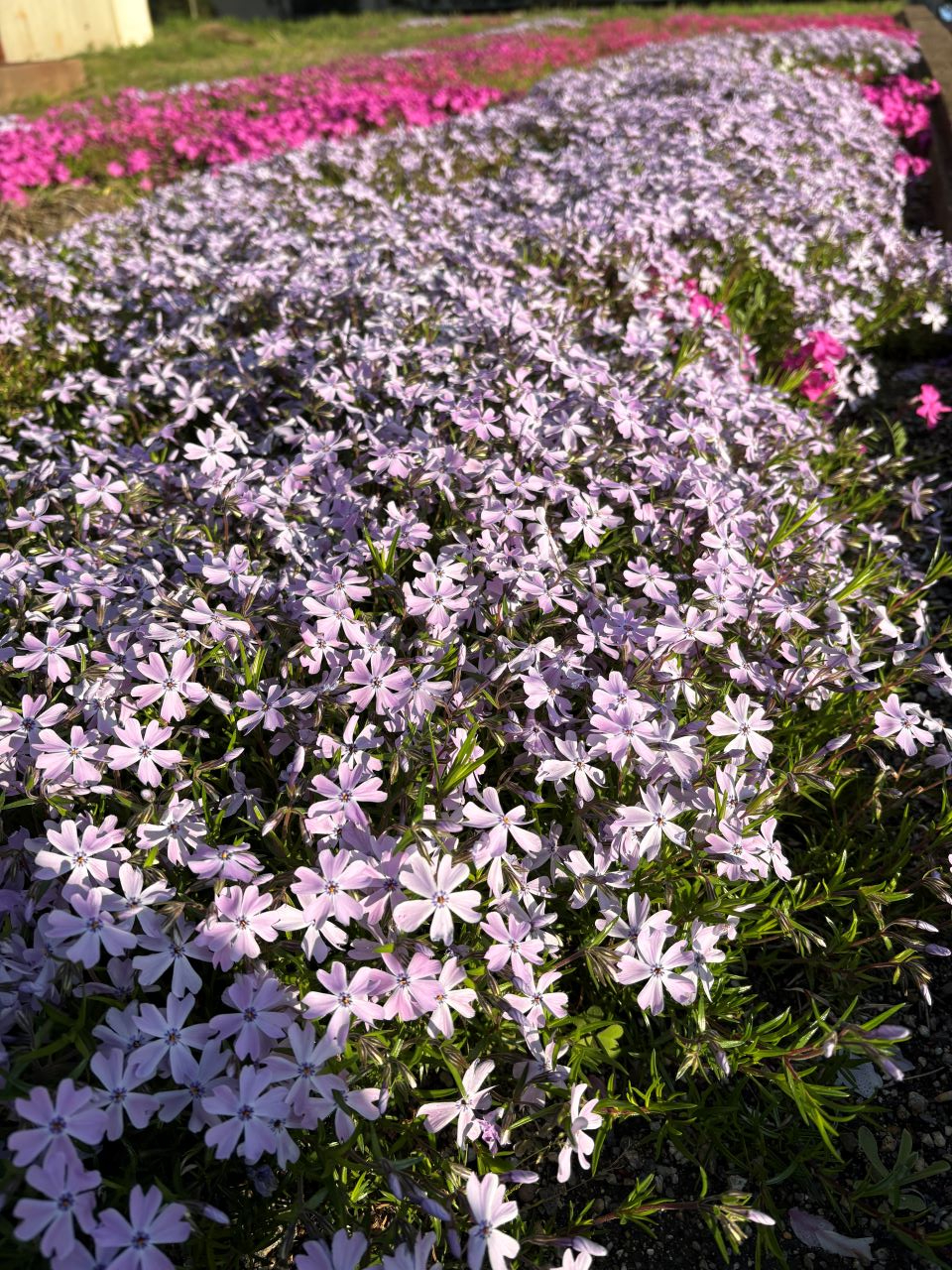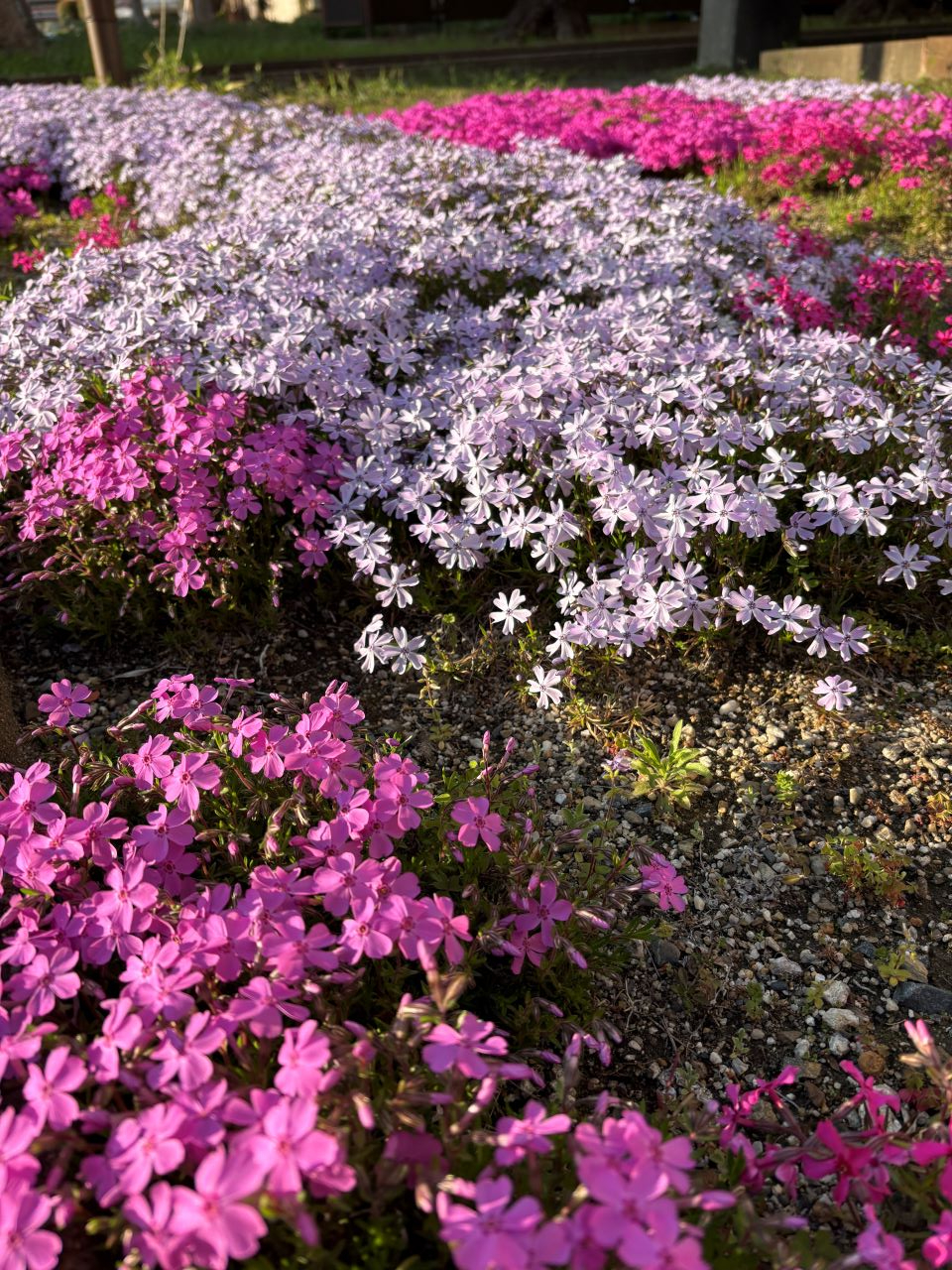 ソメイヨシノはもちろん見事ですが、芝桜も色とりどりに花を広げ、風景を一層華やかにしています。