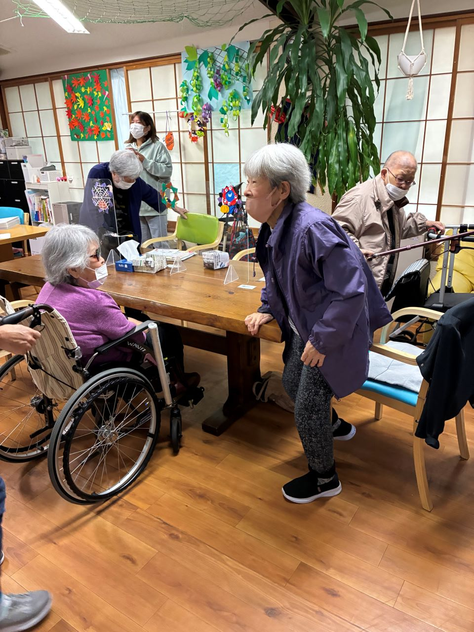 デイサービスのフロア内にはハロウィンのステッカーが貼られ、気分を⤴⤴してもらいました。